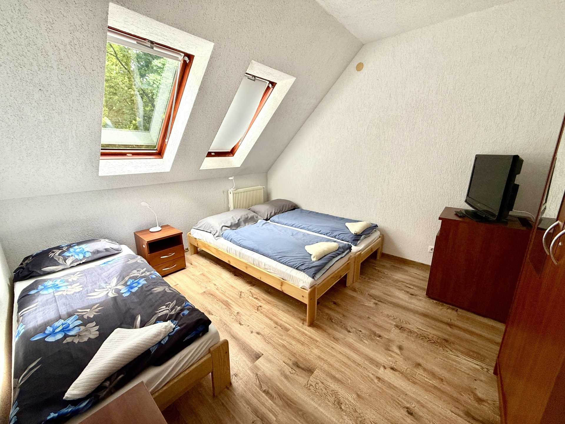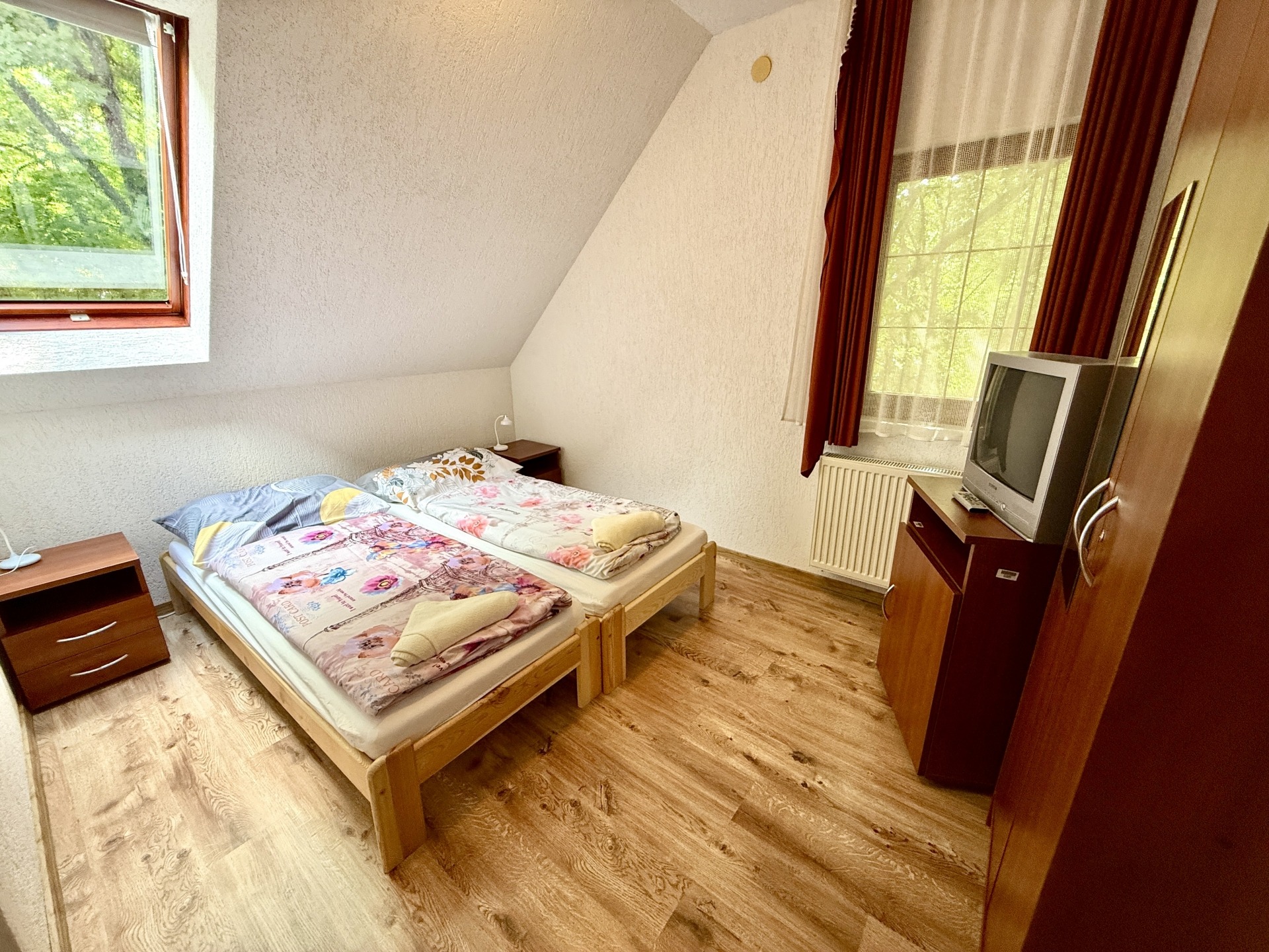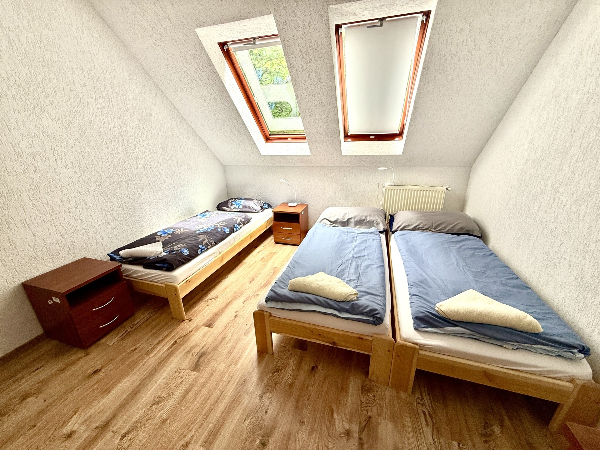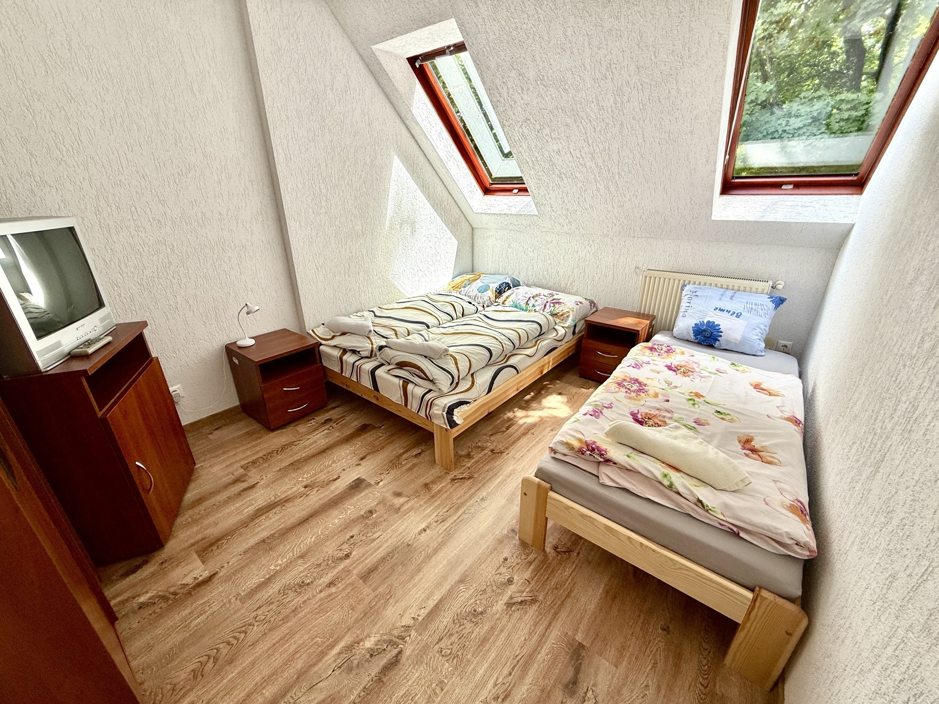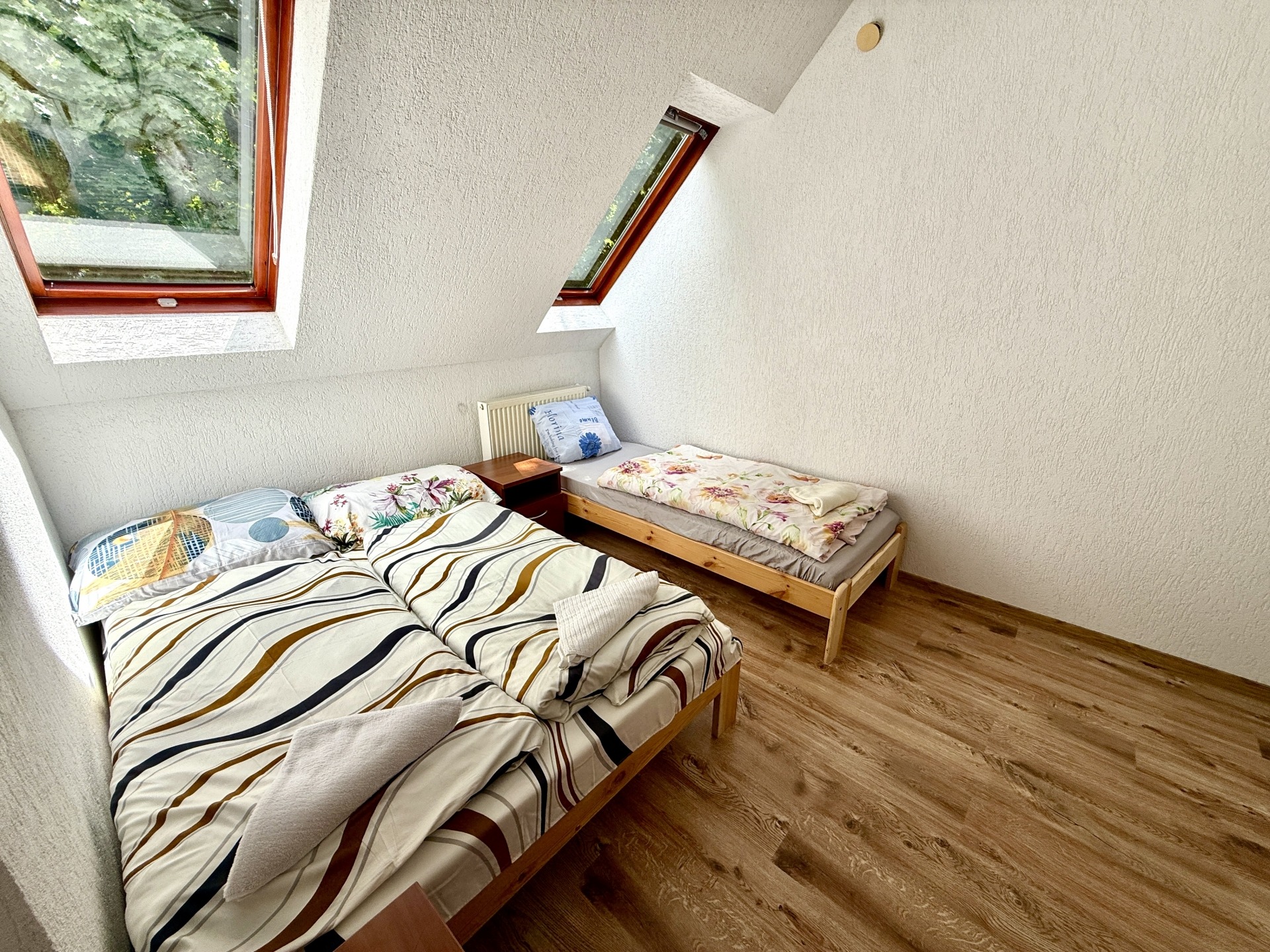 Az emeleten további négy teljesen külön apartman áll rendelkezésre, melyek 2-3 személyesek. Itt található még egy tároló és egy konyha is.