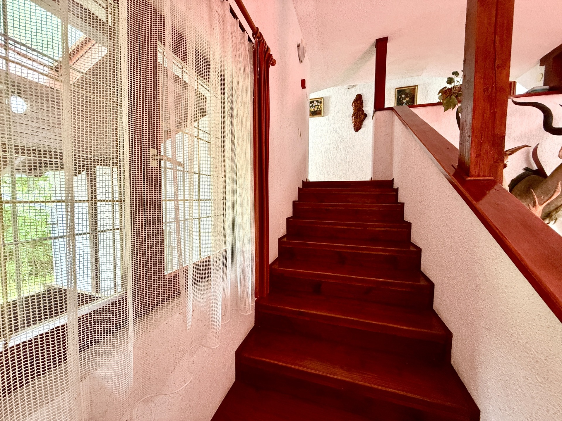 Az ingatlan csendes, üdülőövezeti részen helyezkedik el. A hozzá tartozó terület 1365 m2 nagyságú, lépcsőzetes kialakítású,növényekkel és fákkal ékesített. Az alsó részén helyett kapott egy nagy filagória,ahol több lehetőség is adott a főzésre és sütögetésre akár több társaság számára is.