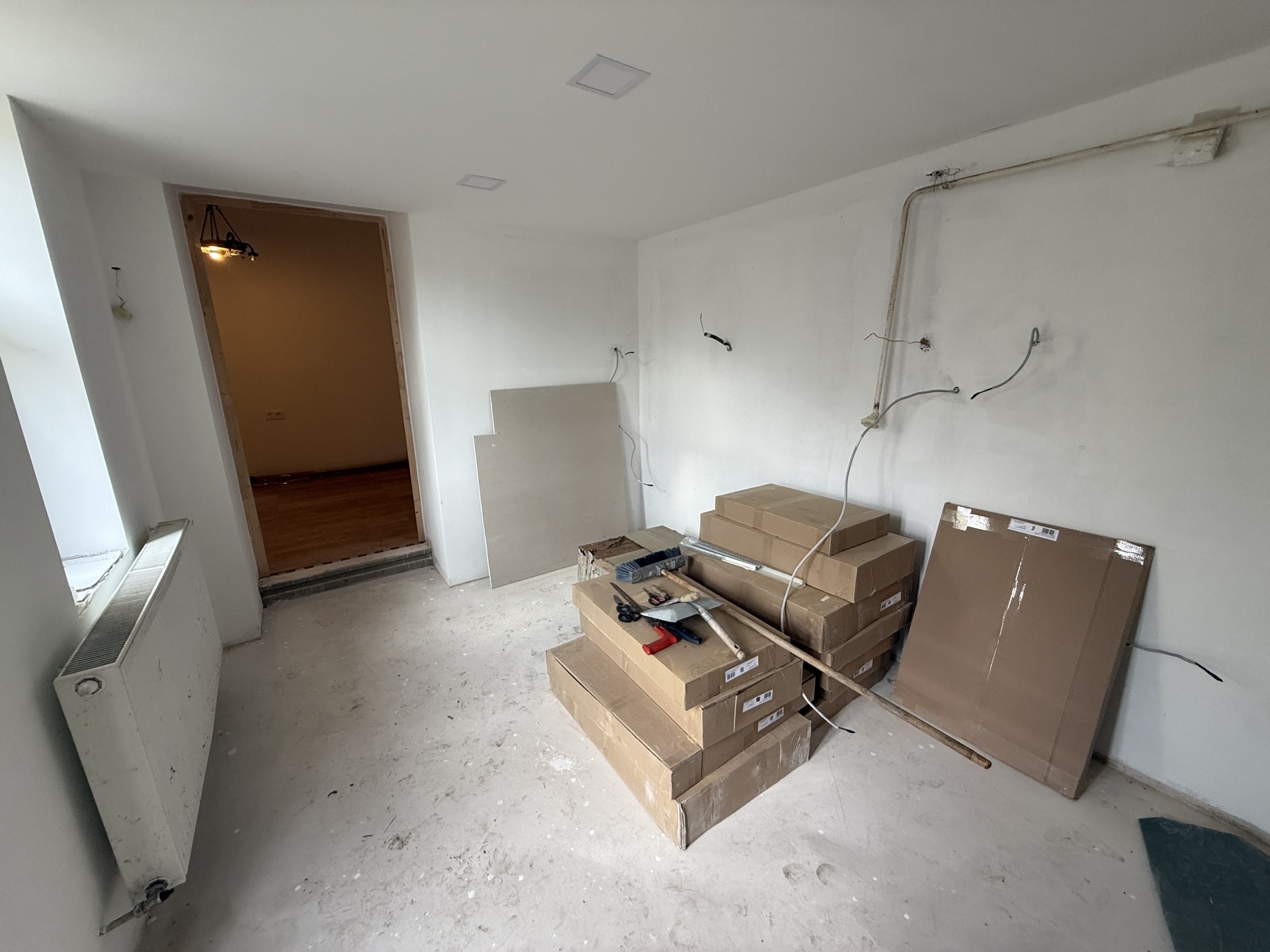 A konyha burkolata nincs lerakva de a vevő rendelkezésére bocsájtják a tulajdonosok,a. konyhabútor is telejsen új de az sincs beépítve.